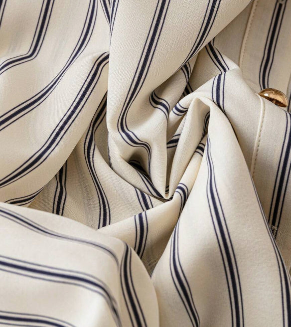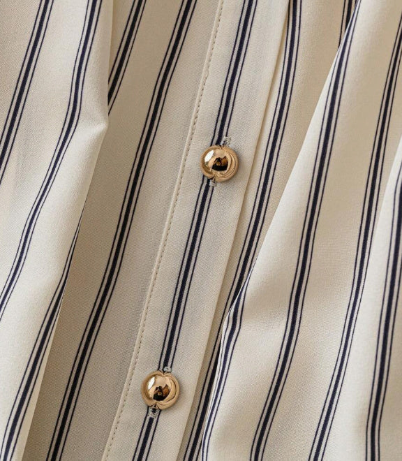 Women's French Striped Smoked Round Neck Bubble Sleeves